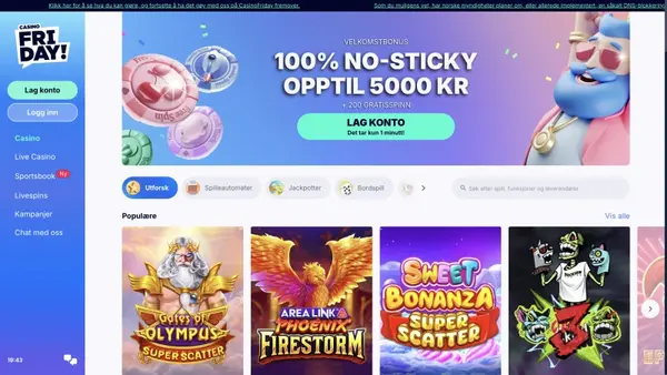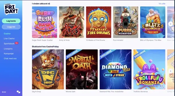 Spill smart hos Friday: Tydelige bonuser, rask bank, 4 000 spill